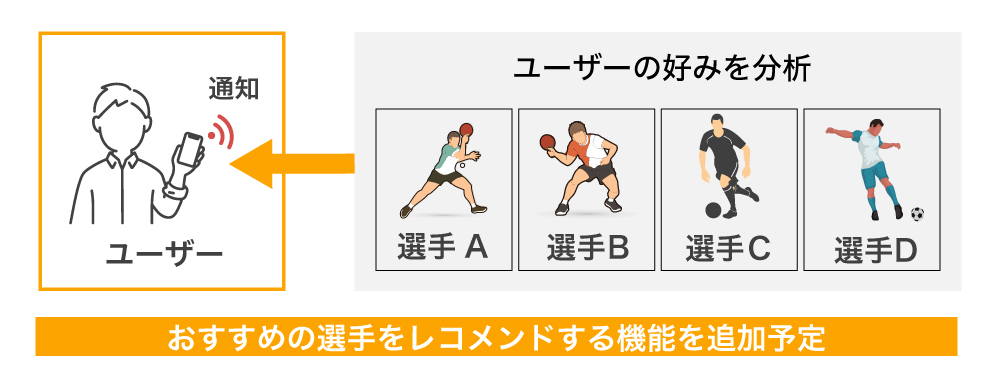 しかし、アスリートについて知見がないユーザーにとっては、利用するハードルが高くなりかねません。そこで、おすすめのアスリートをレコメンドしてくれるなど、スポーツ初心者でも安心して使えるための機能も実装していく予定です。