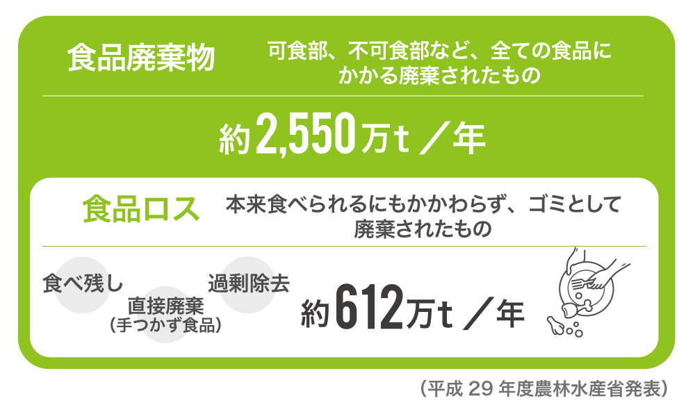 æ¥æ¬ã§ã¯å¹ŽéçŽ2,550äžãã³ã®é£å廿£ç©çãçºçããŠããŸãïŒç°å¢çã«ããå¹³æ29幎床æšèšïŒã