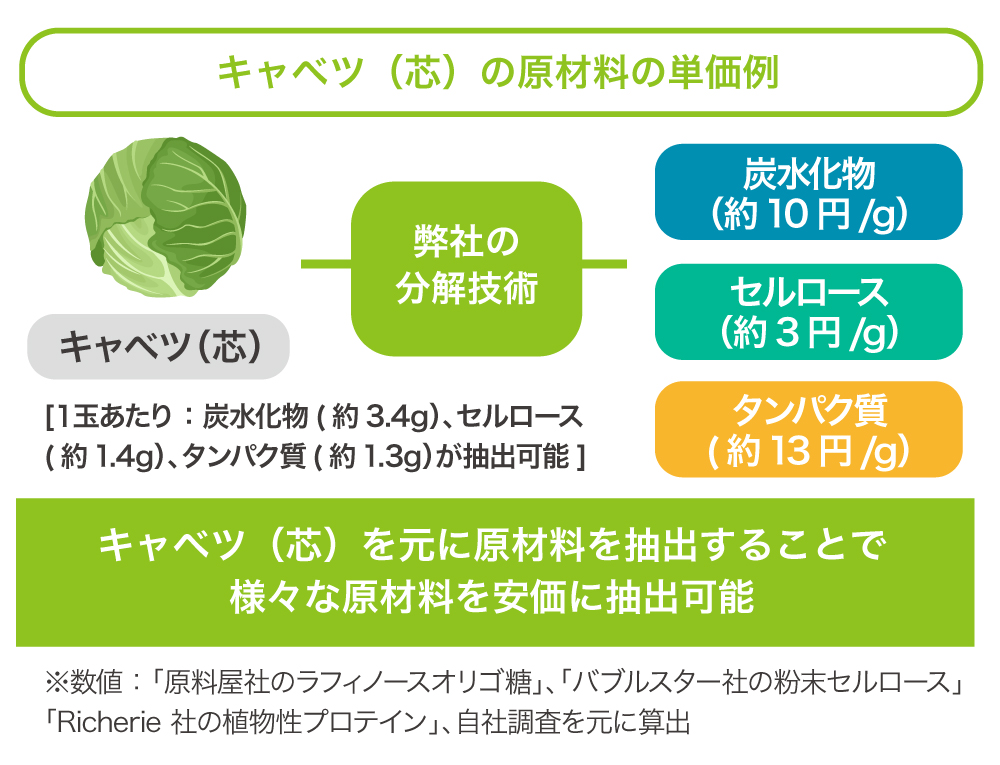 ããããæã ãéçºããã»ã«ããŒã¹åè§£æè¡ã¯ãããããé£åãæ€ç©ãæçšæåãšåäœã»ã«ããŒã¹ãç³æ°Žæº¶æ¶²ã«åè§£ããŸããããã«ãããéèãæå®ãªã©ã®å ã é£ã¹ããããã®ã ãã§ã¯ãªããç®ãæšã®æãèãªã©ã®é£ã¹ãããªããã®ãããã»ã«ããŒã¹ãåãåºãããšãã§ããå€ãã®é£åãªã©ã«ãªãµã€ã¯ã«ãã§ããŸãã
