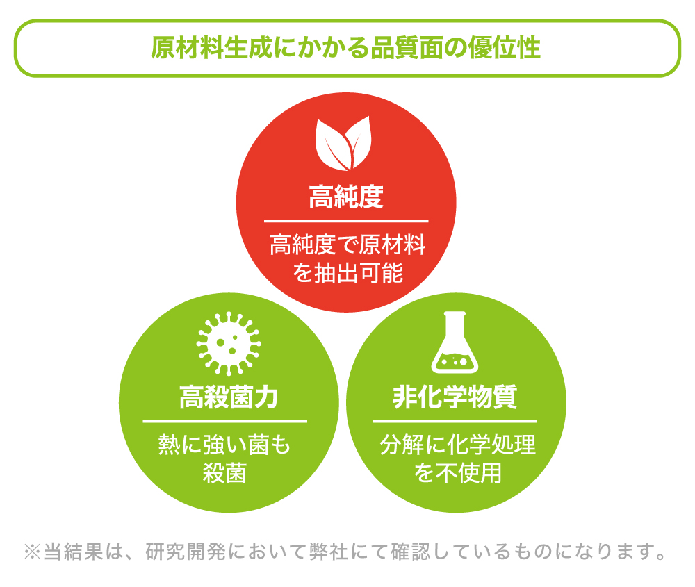 ãããŠãç¹çãã¹ãç¹ã¯ãåŸæ¥ã®è£œæ³ã§ã¯è£œé 課çšã§äžçŽç©ãæ··ããããšããããŸããããåŒç€Ÿã®æè¡ã§ã¯é«çŽåºŠã®åææãåãåºãããšãå¯èœã§ãã