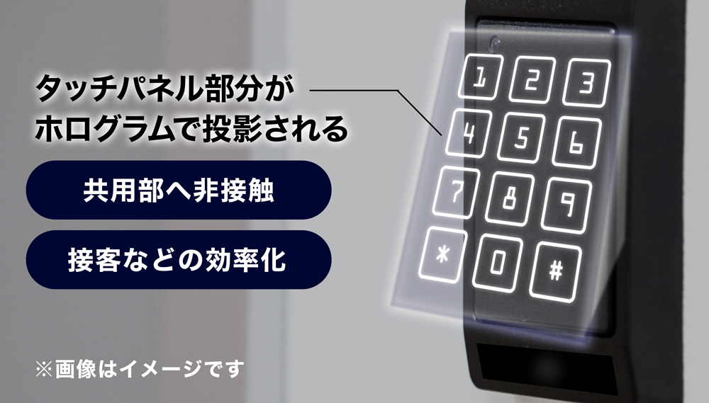 非接触型ホログラムタッチディスプレイは、空中に浮いている映像を操作できるもので、既存のデジタルサイネージやタッチパネルの様に手軽に使える点が特徴です。当製品は飲食店などの注文パネルへの応用や、病院や交通機関、金融機関など様々な“非接触ニーズ”が生まれる場面へ展開していくことで、社会インフラとしての確立を目指し新事業を成長させていきます。