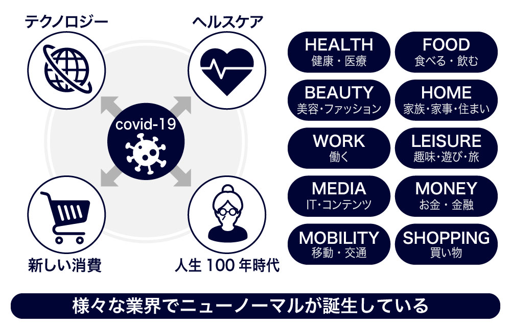 昨年から、日本国内でも蔓延を続ける新型コロナウイルス。「巣ごもり」や「ソーシャルディスタンス」を余儀なくされるなど、私たちの日常は大きく変化しました。オンライン会議や三密回避などはもはや新常識となっており、withコロナの時代において企業はこうした環境変化に対応を求められています。