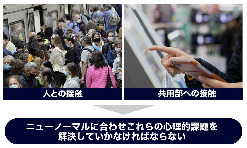 そうした中、苦戦を強いられているのが対面型ビジネスです。飲食店や宿泊施設などは、これまで多くの顧客に対面で接客を行ってきたものの、現在の新たな常識の中では、人と人との「接触」を回避しながら接客を行わなければなりません。また、駅や病院といった社会インフラ的な場所でも同様で、券売機やつり革、ドアの取っ手など不特定多数の人が触れる共有部への接触は極力、回避したいという人々の心理は根強いものがあると考えています。