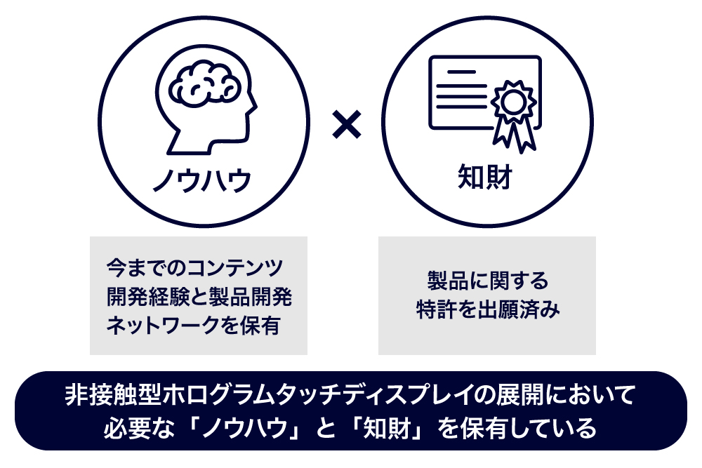 弊社は、非接触型ホログラムタッチディスプレイ販売後、製品認知が一定程度進んだ段階で積極的に知財戦略を展開していくことを計画しています。