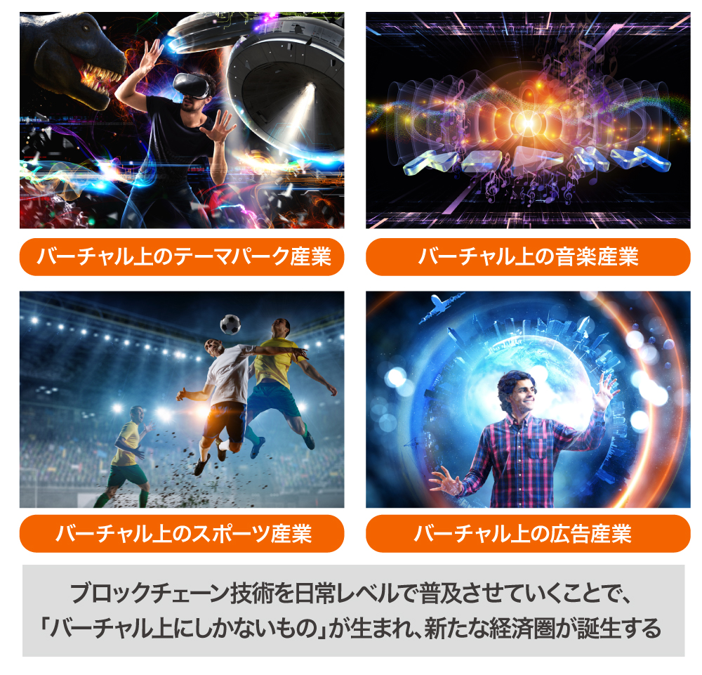 その状況を打破する為、ブロックチェーン技術にエンターテインメントを掛け合わせることで、ユーザーが楽しみながら活用の幅が広がり、社会実装が進んでいくと考えています。その為に、この技術をプラットフォームとして開放することで、様々な企業・産業を巻き込みながら、ユースケースを拡大させていきます。
