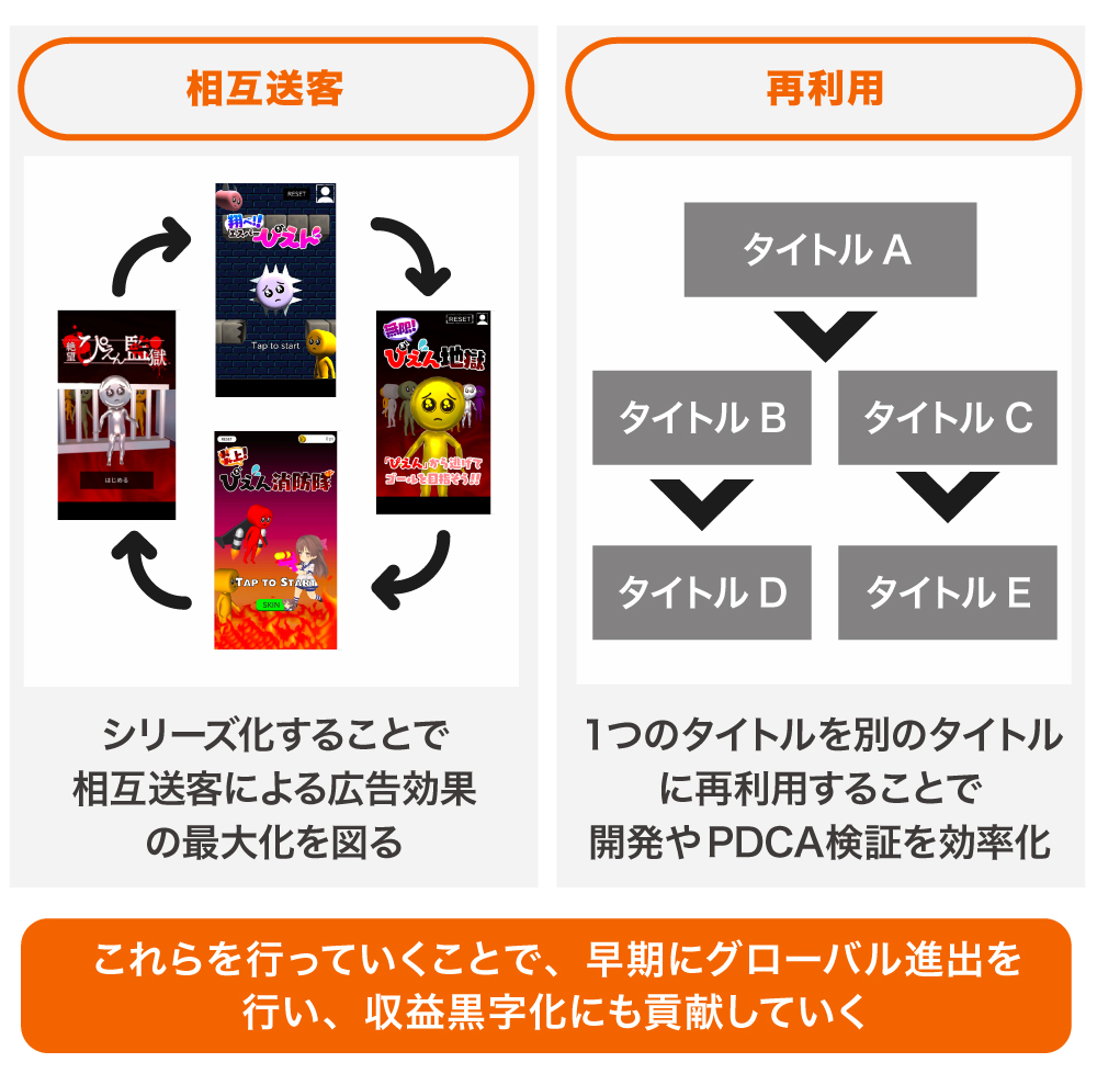 また、1つのゲームをシリーズ化していくことでゲーム間での相互送客も見込まれることから、ゲームシリーズの量産化を行うことで収益の拡大にも繋がると考えています。