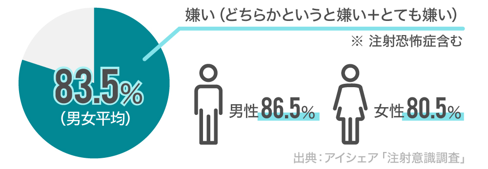 誰もが注射による痛みは敬遠したいものですが、注射恐怖症により文字通り注射に恐怖を感じて見ただけで泣き出すような症状を持つ患者が人口の1割程度いるといわれています。