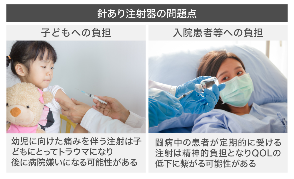 こうした中、もし扱いやすくて安全で、痛みの少ない注射器があれば、患者にとっても医療従事者にとっても安心・安全な医療を実施できるのではないでしょうか。