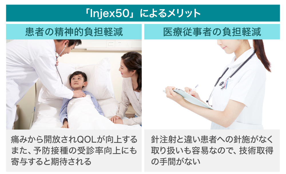 弊社は、針のないジェット注射システム「Injex50(インジェックス50)」を開発し、その上市にむけた普及活動を行っています。