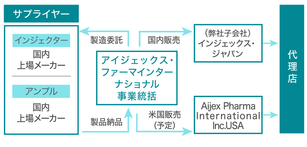 既に、アメリカでの販売に向け、Aijex Pharma International Inc. USAを設立しています。日本で実績を積んだ後には、米国FDA(アメリカ食品医薬品局)での許認可取得を取得し、アメリカでの販売も開始する計画です。