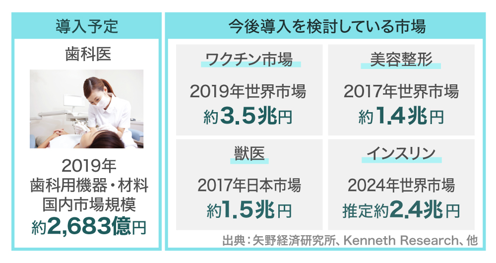 歯科以外にも予防接種や局所麻酔等、多岐に向けて需要が増えていくことを見込んでいます。