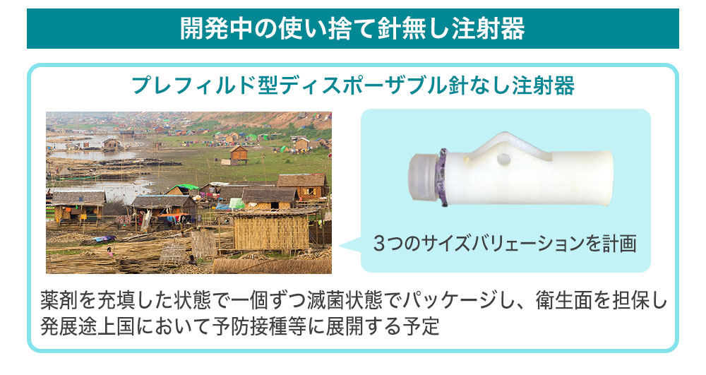弊社は、世界で一番小さなワクチン接種用の使い捨て針無し注射器を開発し、それを世界中に展開したいという目標も掲げています。