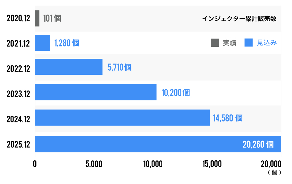 2024年内に「Injex50」の「インジェクター」を国内で1.4万本以上流通させることを目標にしています。また、米国、及び欧州、アジア方面にも積極的に流通をすすめていく計画です。
