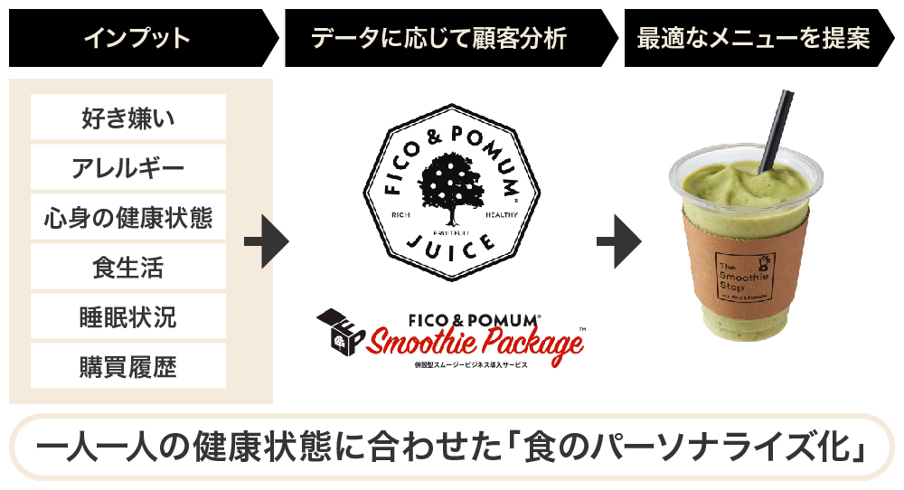 具体的には、一人一人の健康状態に最適なスムージーのご提案や健康管理サポート等の機能を有したアプリケーションによってヘルスケアをサポートしていく考えです。