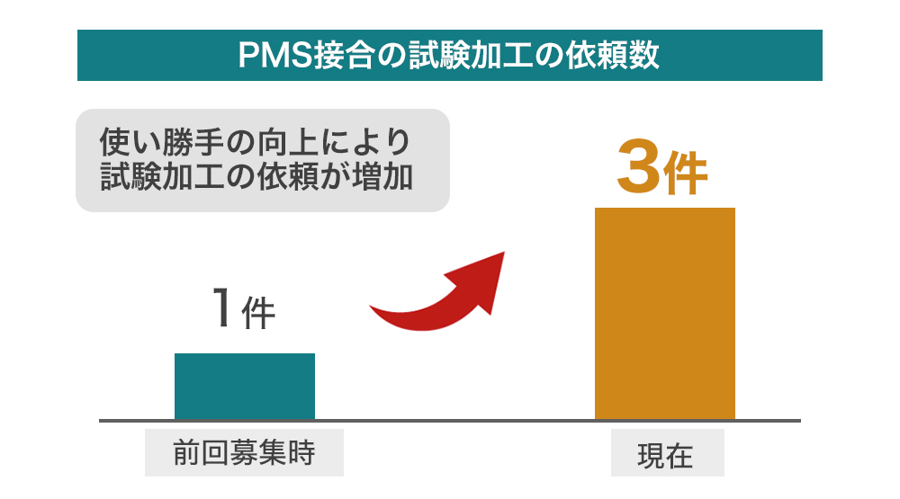 この成果もあり、現在自動車関係のパーツを製造する企業など計3社から試験加工の依頼をいただいており、前回の調達時から順調に推移しています。