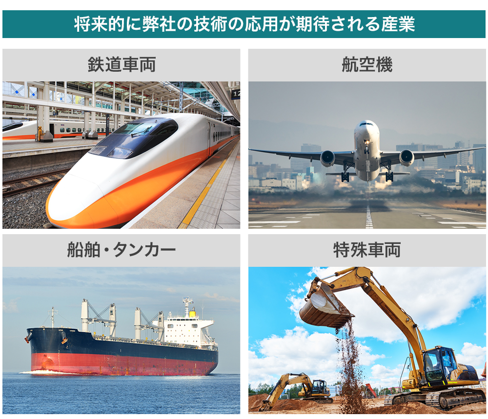 ですが、将来的には自動車に限らずモビリティ全般、例えば自転車や鉄道、飛行機などで活用される技術へと発展させていきたいと考えています。モビリティ産業は、今後ますます軽量化や環境への配慮が重要視されてくると考えられます。そんな、現代社会のニーズにあった事業を進めていきたいと考えています。