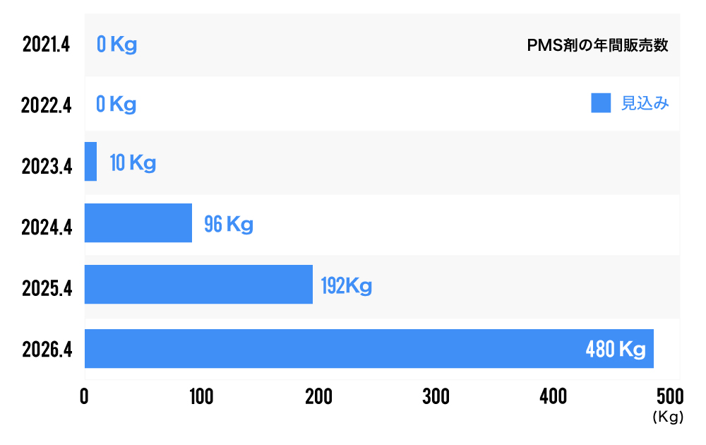 自動車用途では量産前2~3年の時期に量産と同様の仕様で試作機導入及び施策が開始されるため、軽量化部品量産試作開始によるPMS剤及びPMS処理試験装置の出荷を開始する計画です。PMS剤の供給体制を充実させるための事業所拡大を計画します。