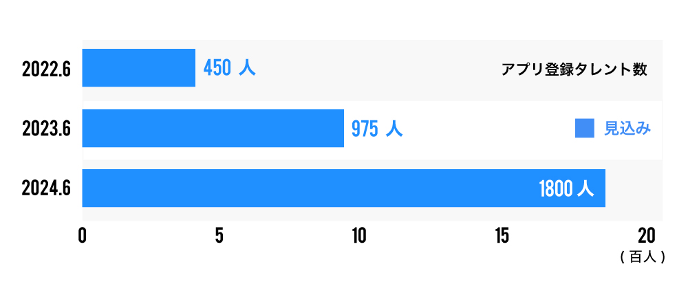 特筆すべき点は、当アプリを通して自社のタレント登録につながっており、毎月15名以上がタレント登録しています。弊社のビジネスモデル上タレントが増えると売上が拡大していくので、当アプリをフックに弊社の各種事業の成長につなげていくことを目指します。