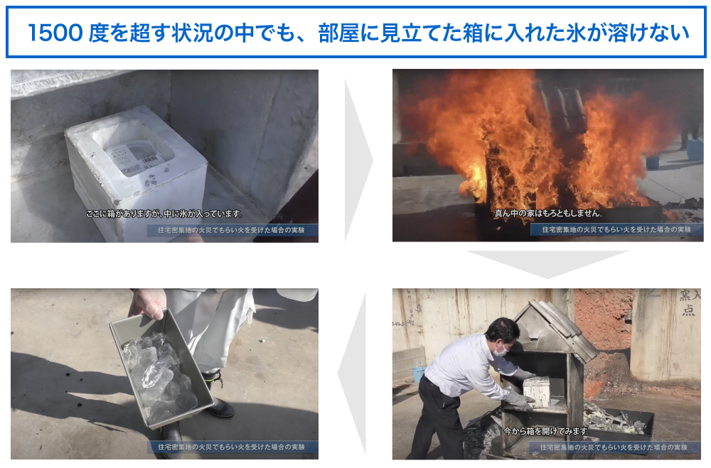 äžèšã¯ãåŒç€Ÿã®å®éšåç»ã§ããFRCã§äœã£ãæç±æã§éšå±ã«èŠç«ãŠãç®±ãäœãããã®äžã«æ°·ãå ¥ãèãããŸããæç±æã®åãã¯ããã0.8mmã§ãããç¯æ²¹ããããŠçãããŠãç®±ã®äžã®æ°·ã¯å šã溶ããŸããã1500床ã®çã«ãèããããŸãã