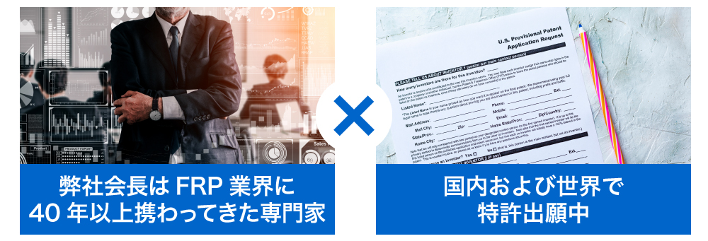 åŒç€Ÿã®FRCã¯ãåŸæ¥ã®FRPãã補é ã³ã¹ããå®äŸ¡ã§ããããã¯ãFRCã®åæã§ããã»ã©ããã¯ããåŸæ¥ã®FRPã®åæã§ãããã©ã¹ããã¯ãããå®äŸ¡ã§ããããšãçç±ã®ã²ãšã€ã§ãããŸããåŒç€Ÿä»£è¡šã®äžéã¯ããšããšã¢ãã¬ã«äŒæ¥ã®ä»£è¡šãåããŠãããé·å¹ŽäžåœãšåŒ·åãªãã€ããç¯ããŠããŸãããããã«ããåææãå®ãä»å ¥ããç¬èªã«ãŒããæã€ããšã§ãFRCã®å䟡ãããã«äžããŠããŸãã