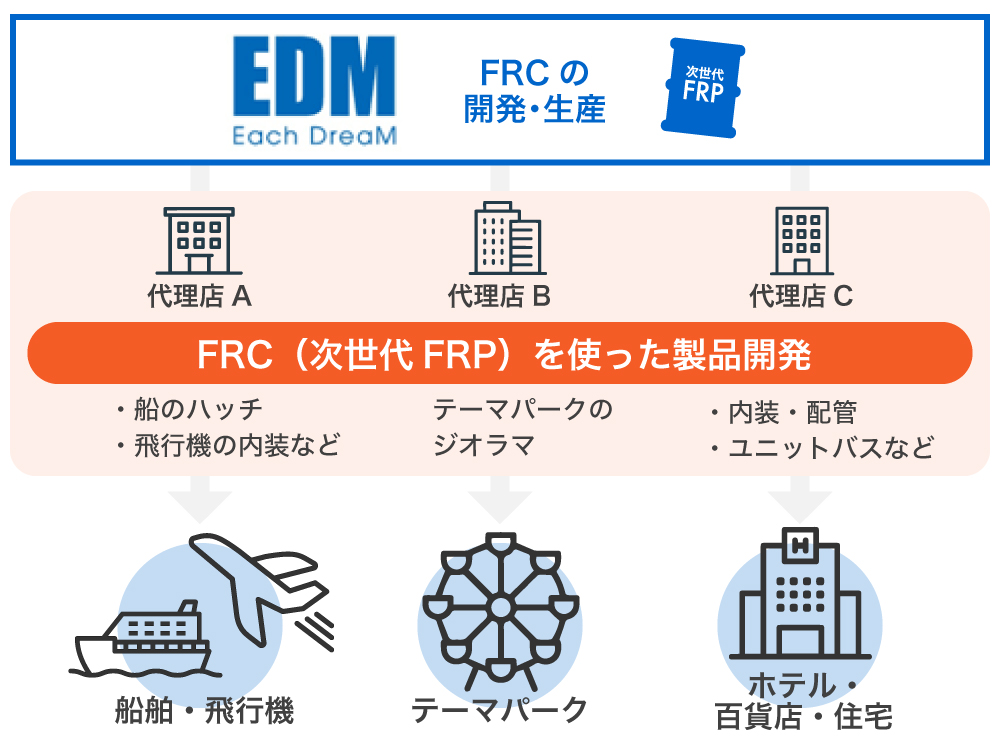 åŒç€Ÿã®FRCã¯ãåœå ã»æµ·å€ãåããã代çåºè²©å£²å¥çŽã«ãã£ãŠè²©è·¯ãæ¡å€§ãããŠãããŸãã販売ãä»»ãã代çåºã¯ãæè¡åãã«ãã ãã£ãŠå³éžãã代çåºããåŒç€Ÿãå¥çŽéãããã ã圢ã§FRCã®åæš©ãå ±æããŸãã代çåºã«ã¯åæ¥çš®ã®ç¹æ§ã»æè¡åã»åŒ·ã¿ã掻ãããŠãFRCãæŽ»çšããããŸããŸãªè£œåéçºãè¡ã£ãŠããããŸãã