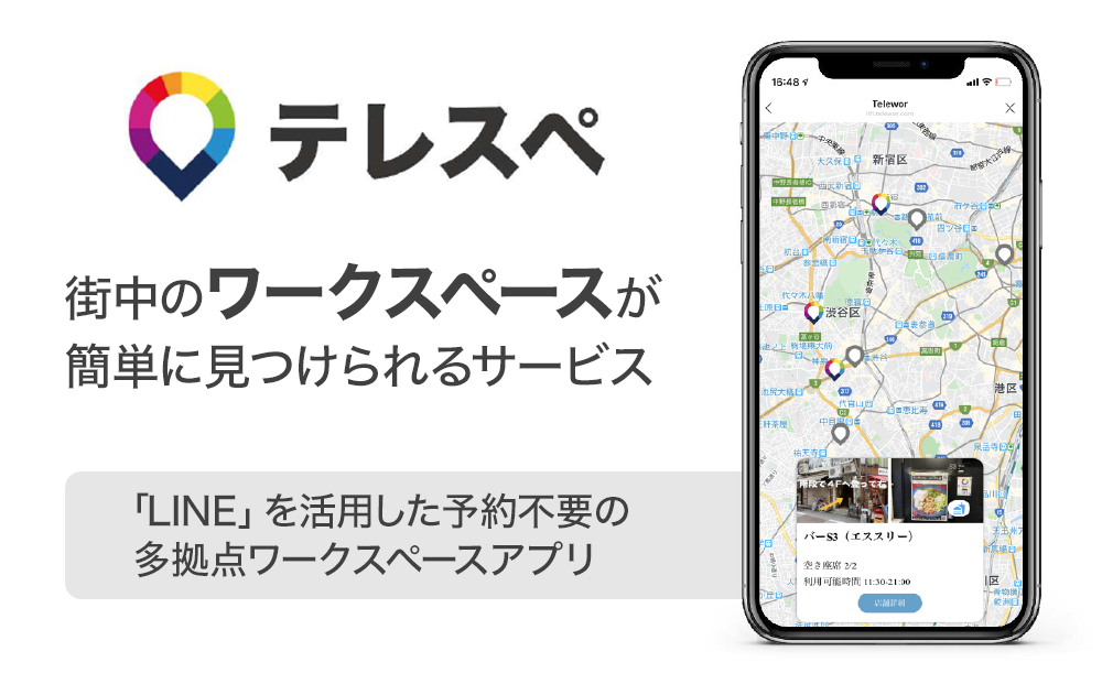 弊社は、ワークスペースの空席状況を、マップ上でリアルタイムに可視化するサービス「テレスペ」を運営しているベンチャー企業です。
