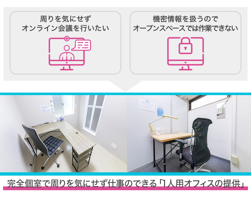 弊社の新サービスが「全室個室」である点は多くの法人に評価されています。その1〜2坪程度の完全個室を、不動産業者が郊外で探そうとしても、そう簡単には見つけられないと思います。