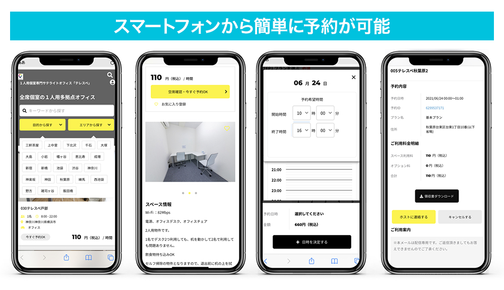 一方、当社が提供している個室は「空き物件」ではなく、「時間帯によって使われていない個室」のリプレイスになりますので、不動産業者が保有するデータベースでは見つけられません。
