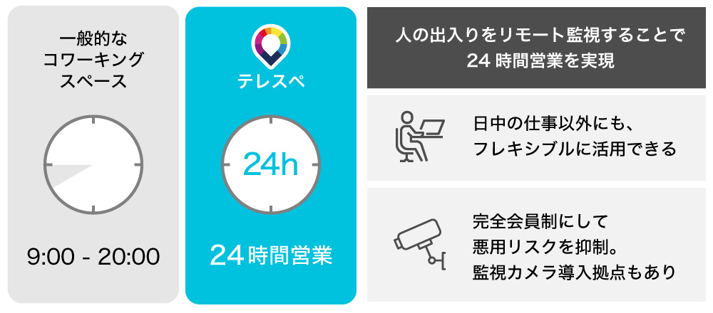 「テレスペセカンドハウス」は、全て無人で運営されているため、場所によっては24時間稼働が可能です。平日の昼間は企業の社員さんが業務に使用し、夜間や休日はフリーランスの方など様々なニーズで収益が見込めると考えています。
