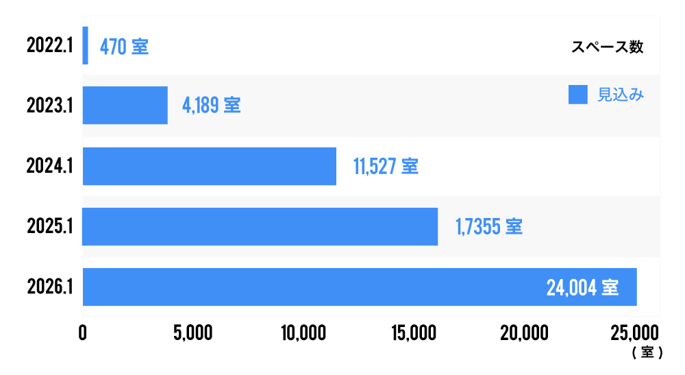 1拠点に1部屋ではなく、1拠点につき複数の部屋が確保されており、ニーズに合わせて1部屋から複数の部屋を提供して需給のバランスを調整していきます。