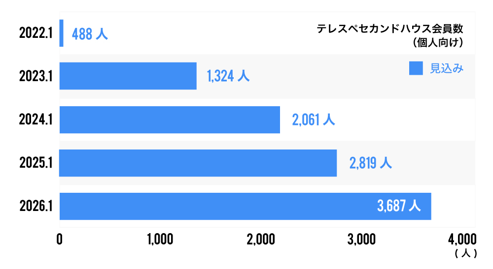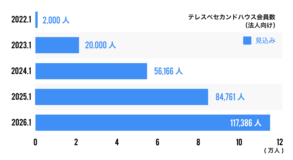 2025年度中に、「テレスペセカンドハウス」の累計スペース数の17,000室突破を計画しています。また、法人だけでなく、個人、フリーランスの方にも多くご利用いただけるよう、サービスを充実させていく計画です。