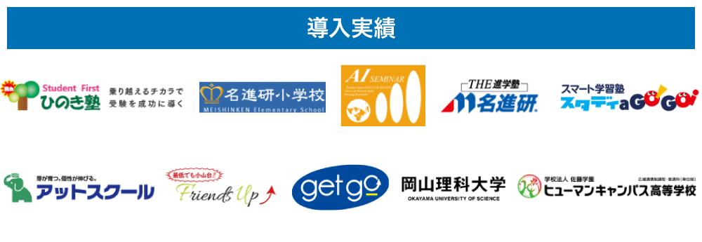 そして、これらの仕組みは、学習塾だけでなく、大学、小中高(私立/公立)、専門学校、習い事教室など、学習に関する全ての教育機関を対象にすることができます。