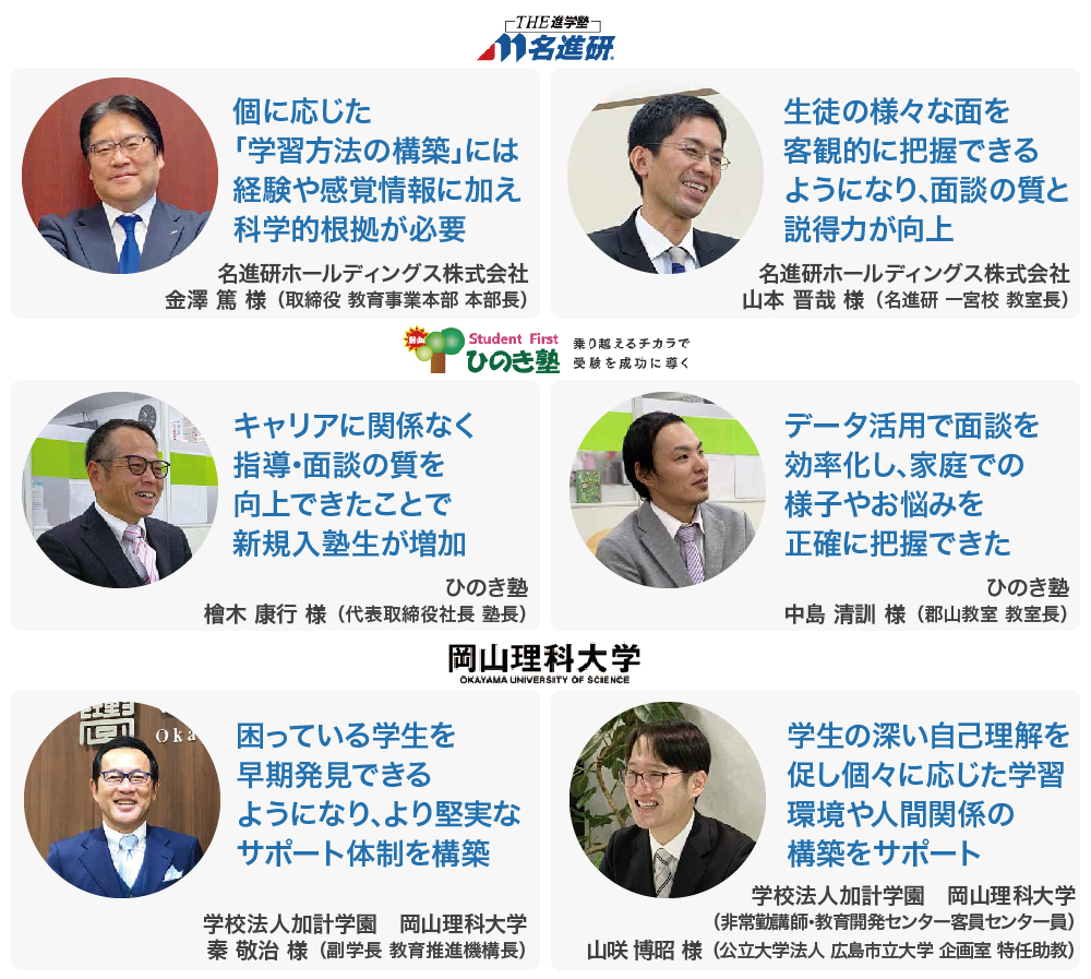 このように、学習の成否が「良い先生との出会い」や「運」に依存する状況では、教育の質は向上していきません。教育機関が真の生徒ファーストを考えるのであれば、教える側の直感だけではなく、生徒や保護者の心理的な側面まで把握できる体系的なツールやサービスが必要だと考えています。