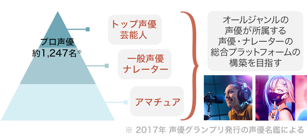 将来的には、声優事務所などとの業務提携も行い、プロ・アマ問わず数多くの声優が活躍するプラットフォームの構築を目指します。