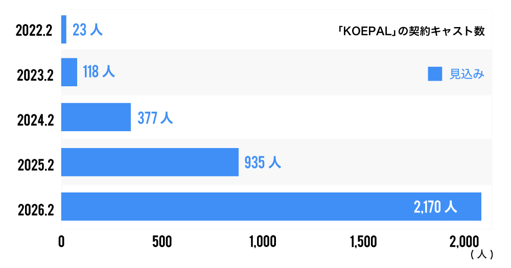 利用者数は、月に1,500〜2,000人ほど増加しています。このペースであれば年末までには20,000人を超えると予想しています。全員がキャストとして実際に活動するわけではありませんが、仮に20,000人の10%が活動するだけでも、2,000人の声優・ナレーターの候補を確保することができます。