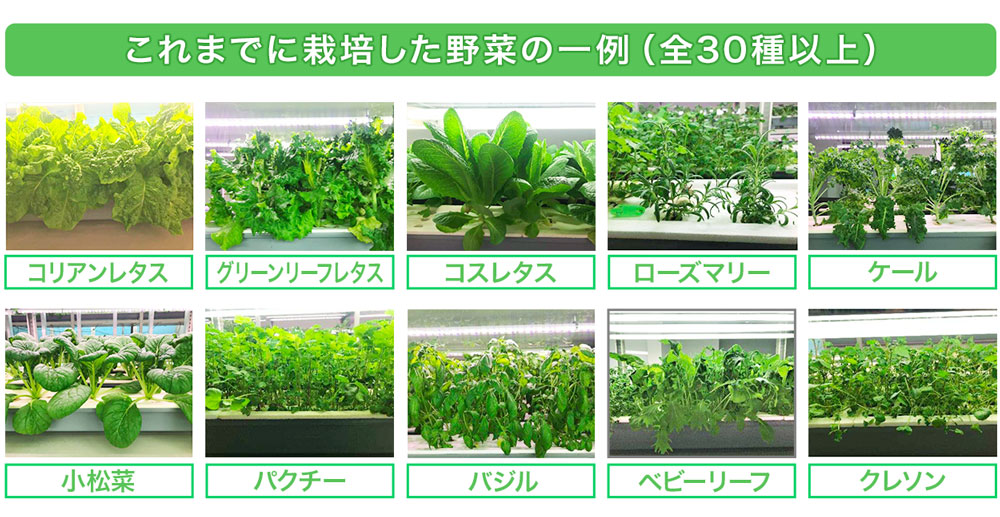 また、一番最初に導入した、鹿児島県の植物工場では、既に弊社の技術で栽培されたサンチュなどのリーフレタスとバジルなどのハーブ野菜が地元のスーパーで2019年から販売され、好評価を頂いています。