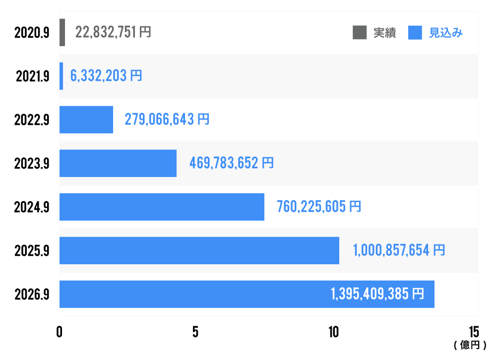 下の表は現時点において今後の経営が事業計画通りに進展した場合のスケジュールです。そのため、今回の資金調達の成否、調達金額によって、スケジュールは変更となる場合がございますので、予めご了承ください。また、売上高は事業計画を前提としており、発行者の予想であるため、将来の株価及びIPO等を保証するものではありません。また、下記の数値は2021年12月に設立予定の合弁会社の売上を含んでいます。詳しくは契約締結前交付書面をご確認ください。