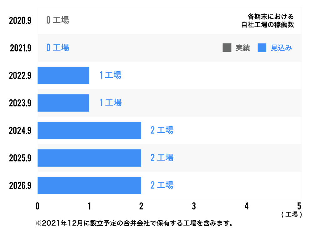 アグリホールディングス株式会社と共同で運営する自社工場の建設を行い、2022年4月には稼働を開始していく計画です。この工場での販路は、アグリホールディングス株式会社での使用に合わせ、メガバンクの紹介によるスーパーマーケットチェーン及び日本で最も野菜を購入している食品加工業者を予定しており、「中規模地産地消型植物工場」の重要性や収益性をアピールしていきます。これで植物工場システムの受注を加速させる計画です。