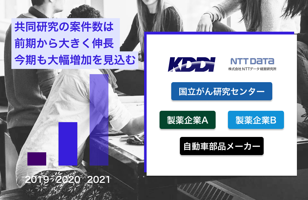 これにより、KDDIとNTTデータ経営研究所などと行っているエンタメ関連や生産性向上コンテンツ開発、国立がん研究センターや大手製薬企業複数社とのDTx事業の共同研究開発など研究開発事業が成長しています。