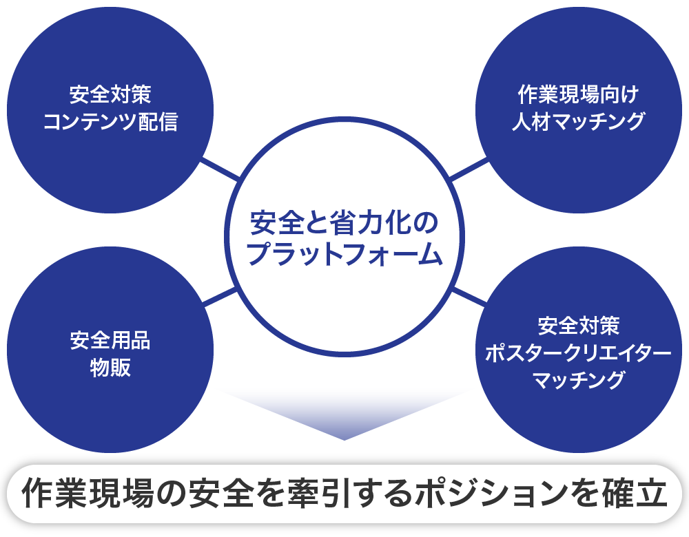 これにより現場作業員のID数を伸ばし、将来的には工事に必要な資格・スキルを持った技術者との人材マッチングや安全用品の売買、事故を防ぐノウハウを集約したコンテンツ配信など、作業現場が求める様々な機能を有したプラットフォームを目指していきます。