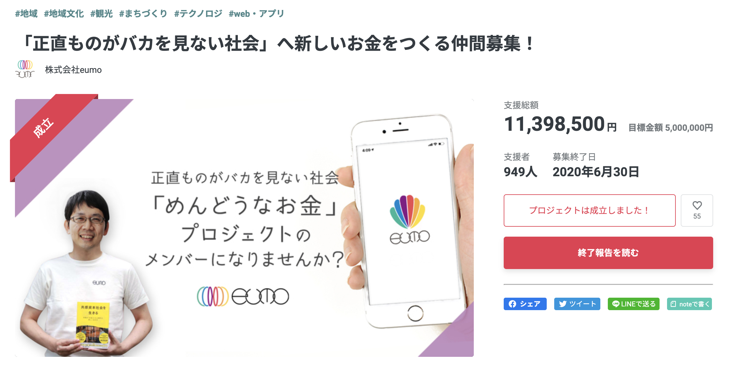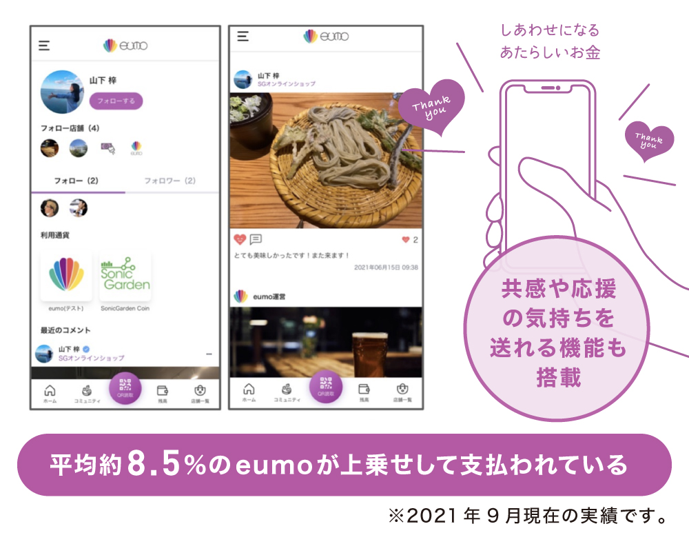 その後、共感コミュニティ通貨「eumo(ë)」のテスト運用時から参加させていただいております。