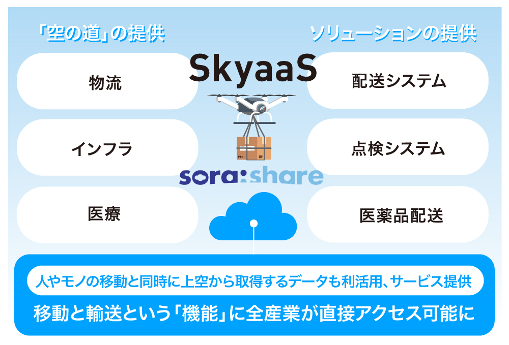 「SkyaaS」はドローン物流のコンサルティングやノウハウ提供も含め、誰でも「レベル3」及び「レベル4」飛行によるドローン産業に参入できる「空の利活用トータルソリューション」として提供することを検討しています。