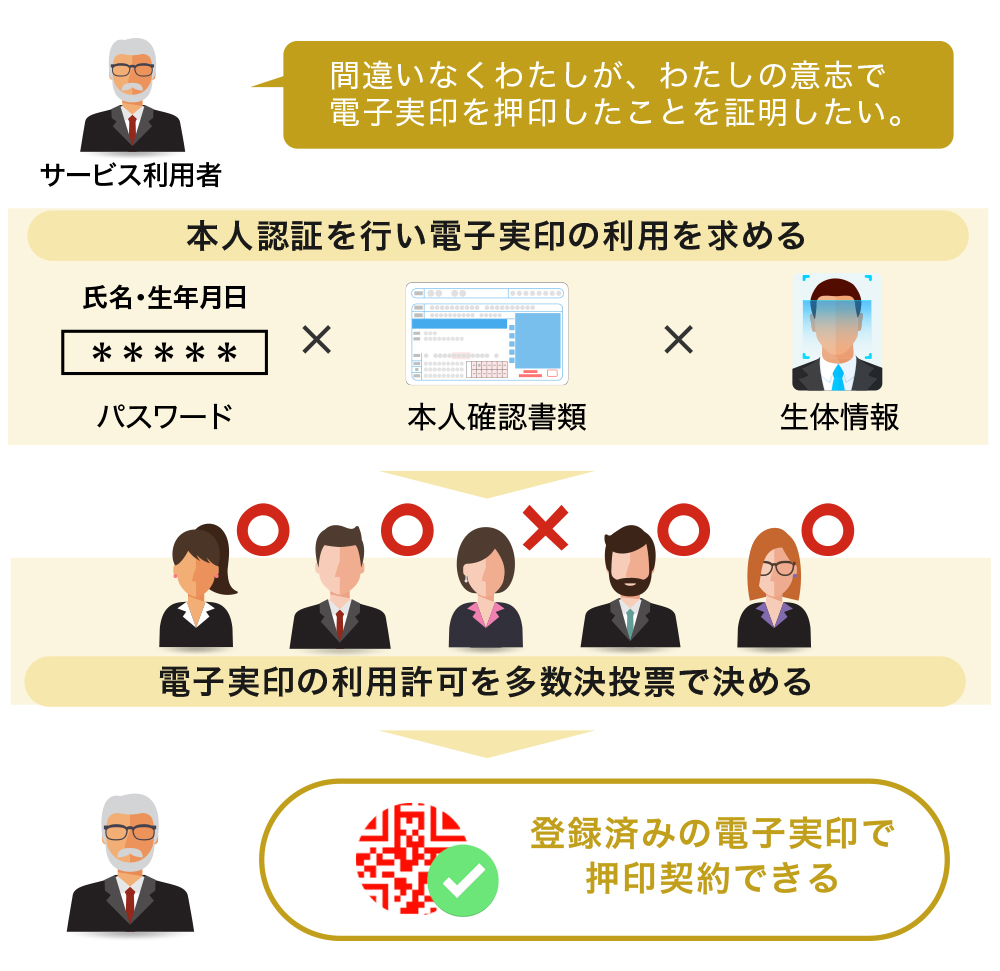 åŒç€Ÿéçºã®ãããã¯ãã§ãŒã³æè¡ã«ããèªèšŒãã©ãããã©ãŒã ãKAMSãã¯ãäœæããé»åå®å°ã®å¹åãä¿ã€ããããã©ãããã©ãŒã ã«ãŠé»åå°ç« ãæå·åããŠä¿ç®¡ãããã«è€æ°ã®è°æ±ºè æç¥šã«ãã£ãŠäžæ£ã鲿¢ããä»çµã¿ãæ§ç¯ããŠããã®ã§ãå®å šã«å©çšã§ãããšèªè² ããŠããŸãã
