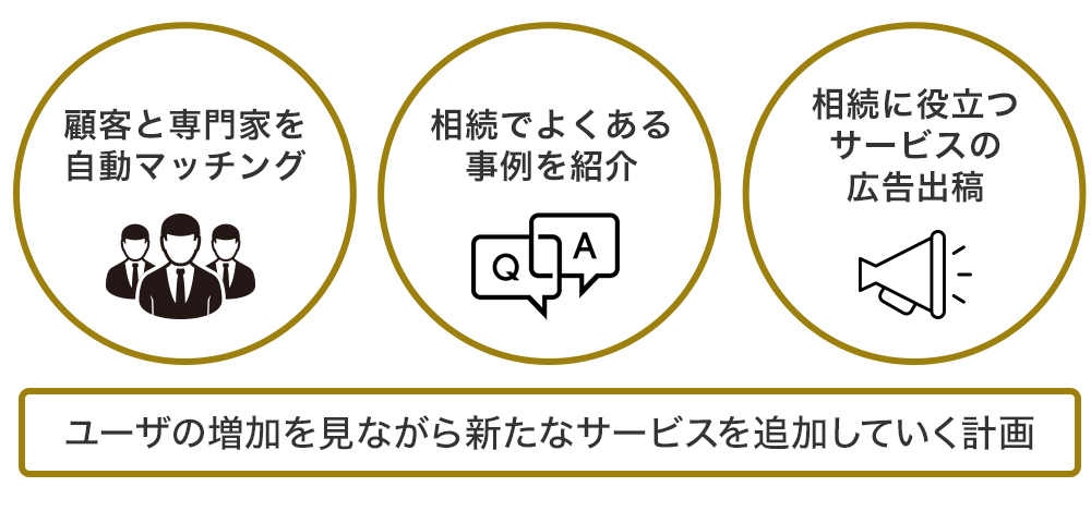 2022年以降、ユーザ数が増加軌道に乗ってからは、税理士や司法書士など相続の専門家とマッチングできる仕組みをサービスに導入する計画です。