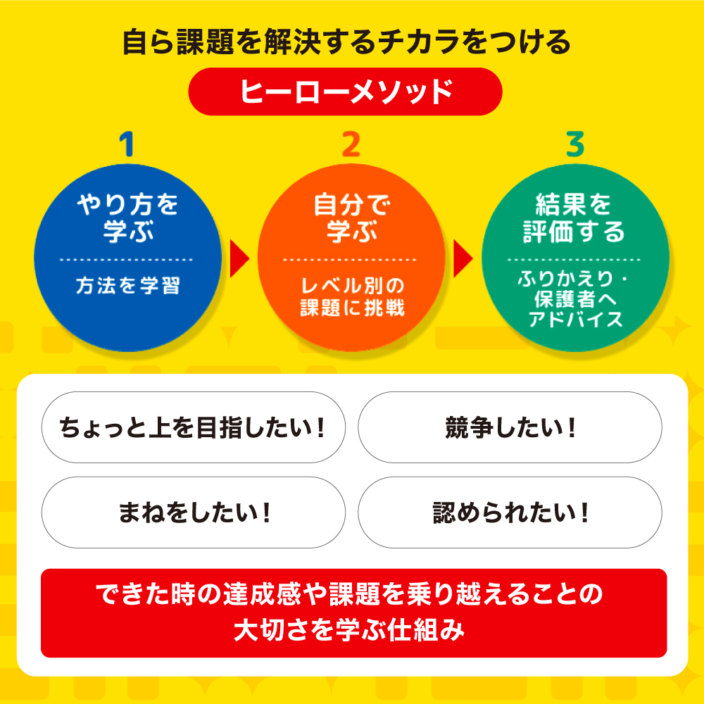「ヒーロー幼児園」の教育は、弊社が開発した独自の「ヒーローメソッド」に基づいています。