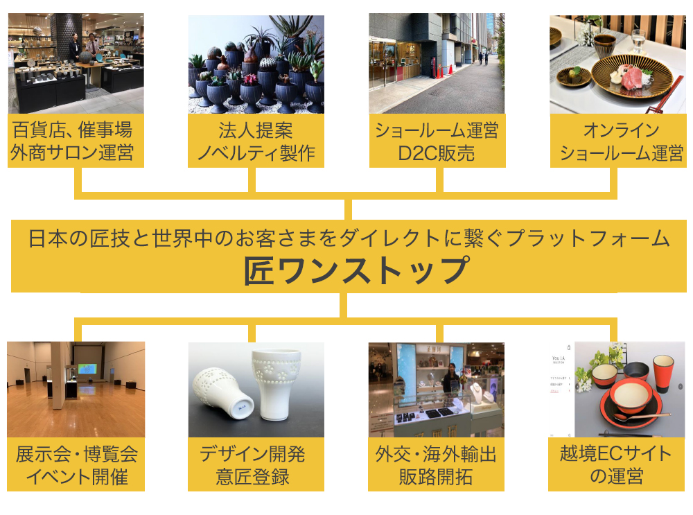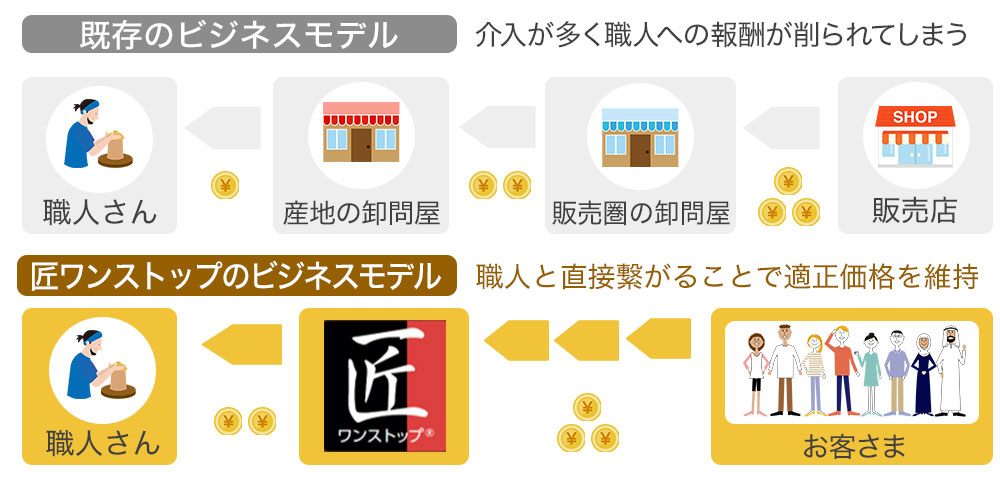 私たちは、職人・作家さんとお客さまとを繋ぐ匠ワンストップサービスによって課題解決を図っております。