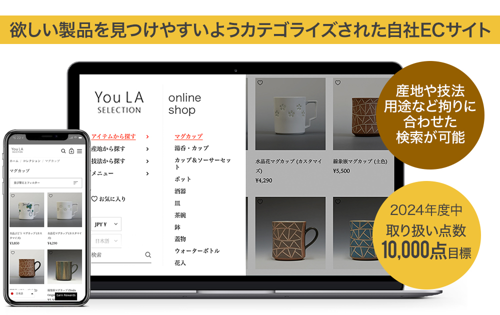 また、昨年から始めたECサイトでは、職人さんと一般消費者をダイレクトに繋ぎ、D2Cの形で陶磁器をセミオーダー方式で安価に注文できる仕組みにしています。