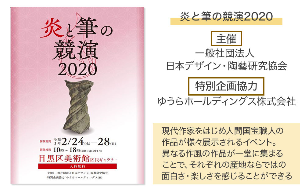 ● 笠間焼・丹波立杭焼・美濃焼の展示「炎と筆の競演2020」