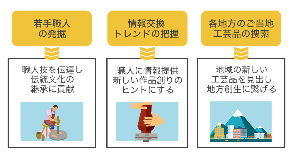 より多くの方に日本の文化である伝統的工芸品を知ってもらえるきっかけを創り、匠ワンストップを通じて「お客さまと職人・作家さん、産地の地域」に貢献していく所存でございます。