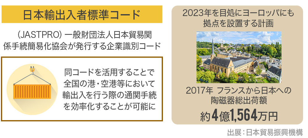 弊社は、陶磁器の日本輸出入者標準コードを2017年に取得しています。